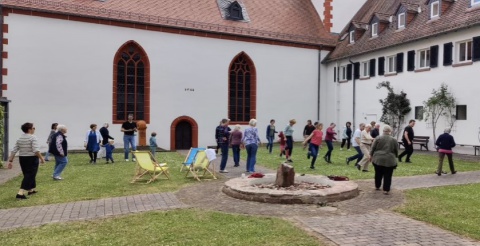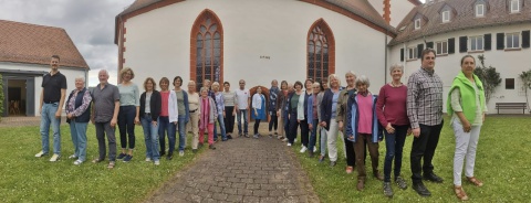 Töne des Lebens – das Motto der diesjährigen Soirée am 13. Juli um 16.00 Uhr in der katholischen Kirche Wiesenbach wurde auf dem Probenwochenende des Chores vor beeindruckender Kulisse im Kloster Höchst umgesetzt: Intensives Üben in großzügigen Räumlichkeiten oder unter freiem Himmel, gesellige Abende bei Speis und Trank, gemeinsames Lachen und vielschichtige Gespräche, Sinnieren über tiefgründige und gefühlvolle Lieder haben die rund 25 TeilnehmerInnen unter der Chorleiterin Cornelia Rau-Spitzner noch enger zusammengeschweißt.