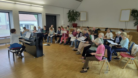 Am 12. April kamen wir, die „Töne Wiesenbachs,“ zusammen, um für einen ganzen Tag mit unserer Dirigentin Almut Bernhardt intensiv zu proben. Wir hatten die Räume im evangelischen Gemeindehaus zur